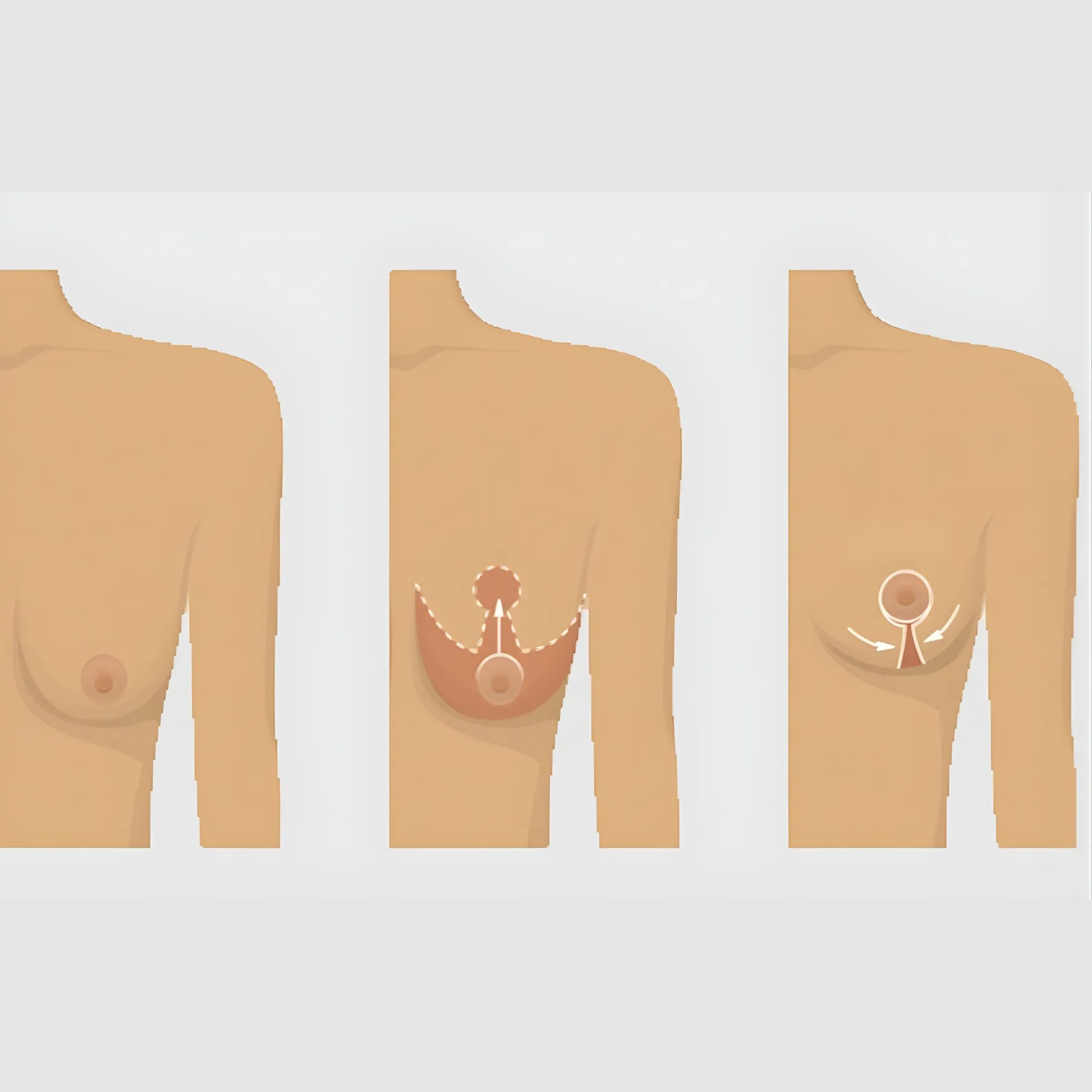 - Mastopexia periareolar, indicada cuando el exceso de piel es leve y solo es necesario corregir la altura de la areola.